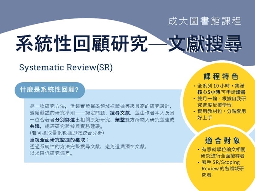 [課程] 展開你的研究與研究方法-透過系統性回顧搜尋