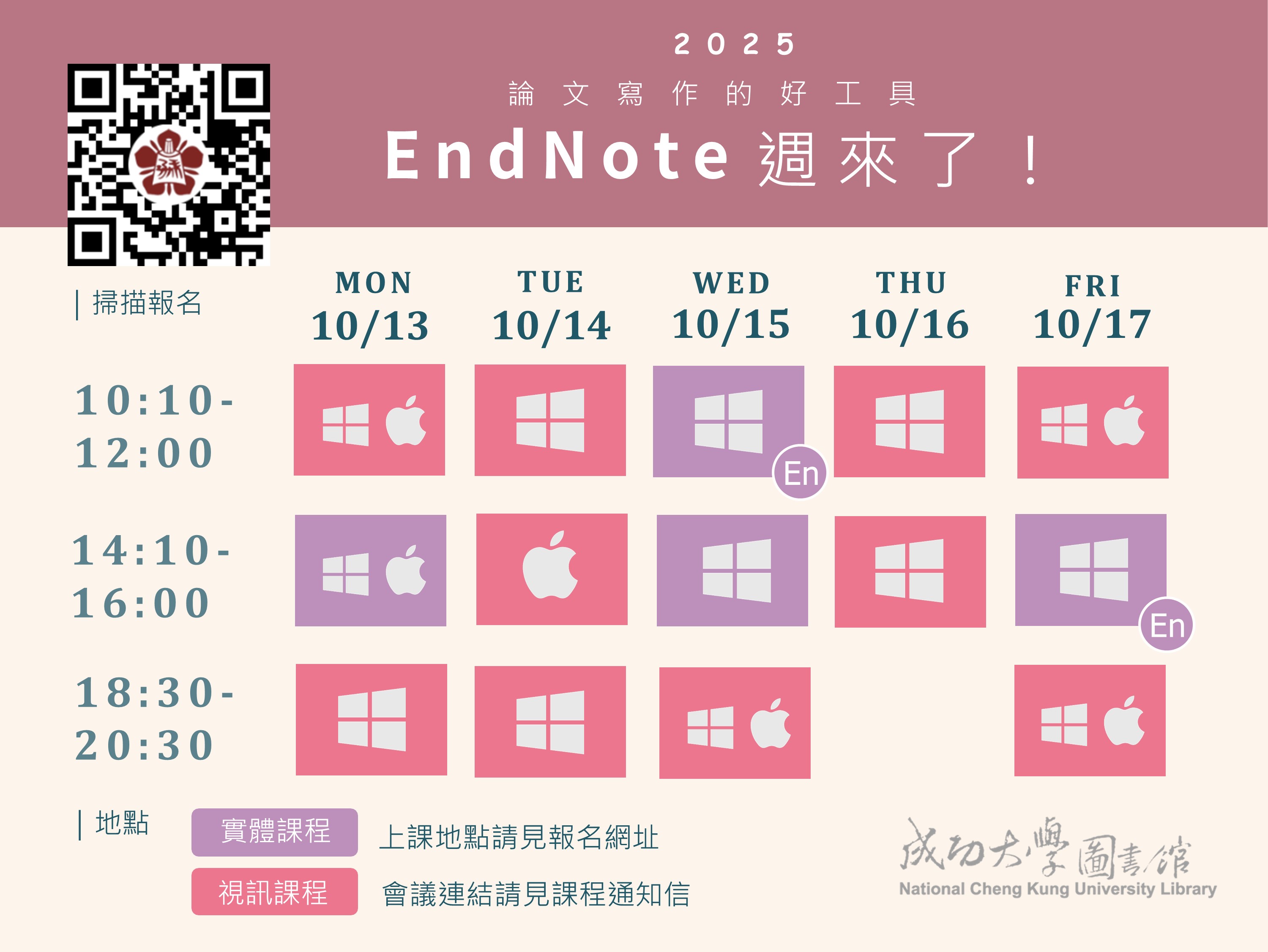 10/17 (五) 14:10-16:00 EndNote Basics for Win (English-taught 英語授課) [Sign Up]