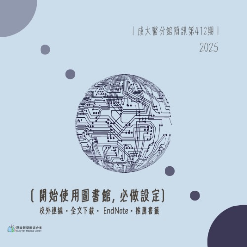 醫分館簡訊412期:【開始使用圖書館,必做設定】 + 成大醫分館114年9月醫學新知與延伸閱讀