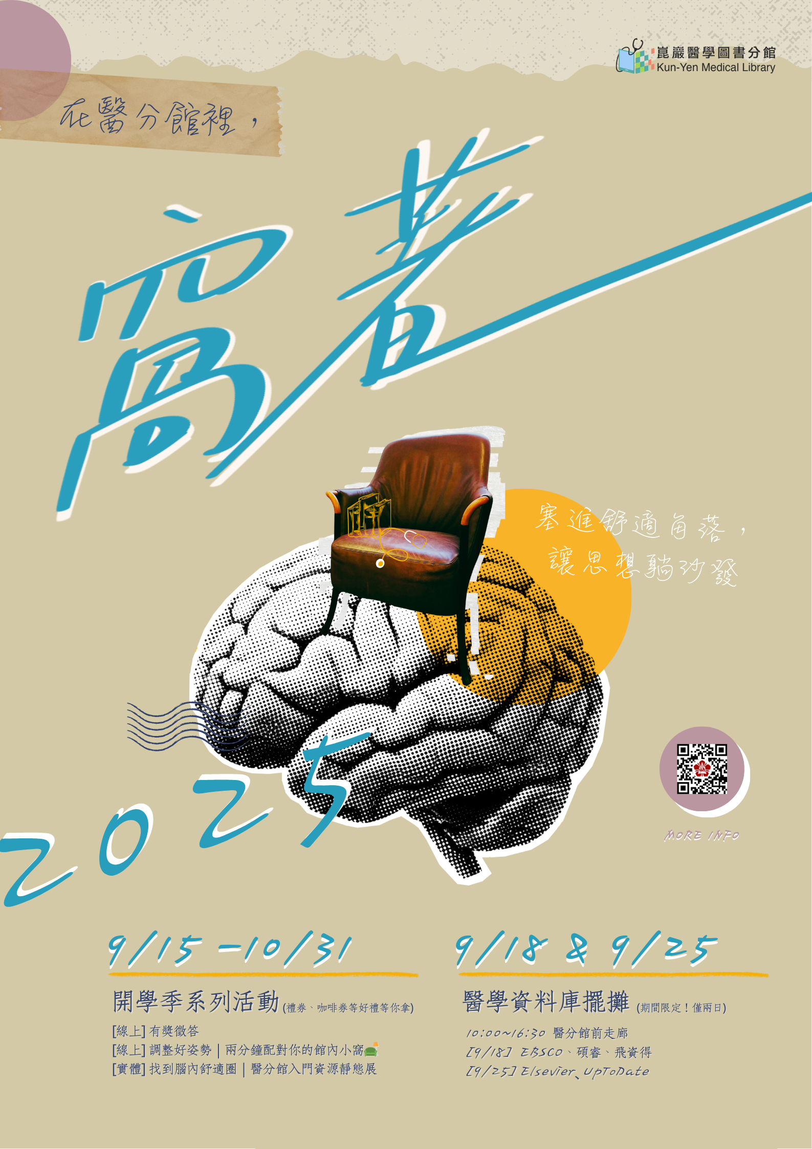 2025/9/15(一)~2025/10/31(五) 至醫分館探詢你的小窩、了解入門圖書館資源,同步舒展腦內舒適圈。