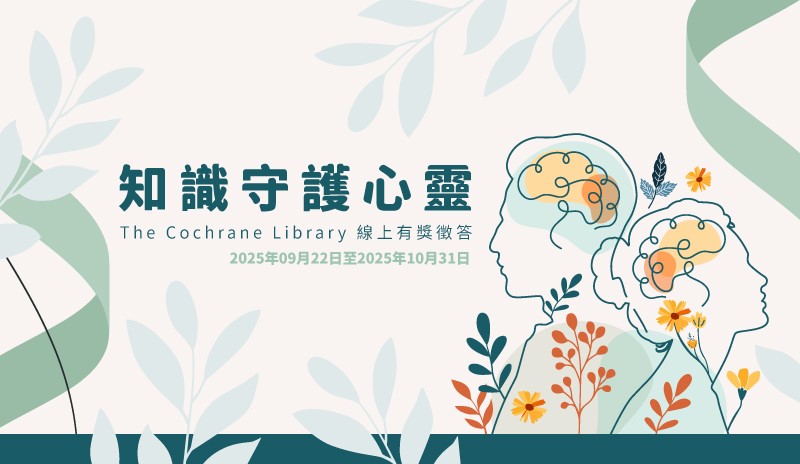 打開電腦,動動手指參加 「知識守護心靈:Cochrane Library 線上有獎徵答」。